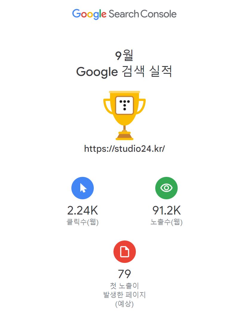 08월과 비교하면 총 클릭수 및 총 노출수는 감소되었습니다.