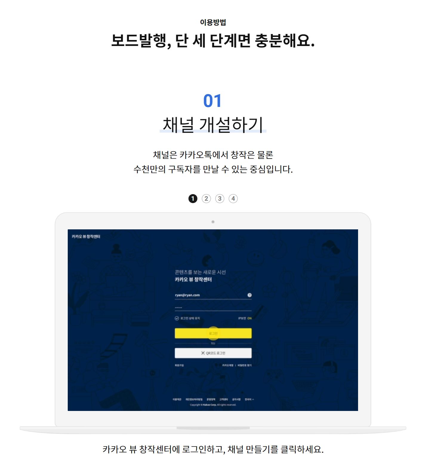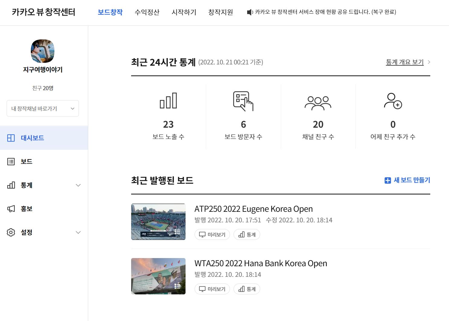 카카오 뷰 창작센터에서 쉽게 채널을 개설했습니다.