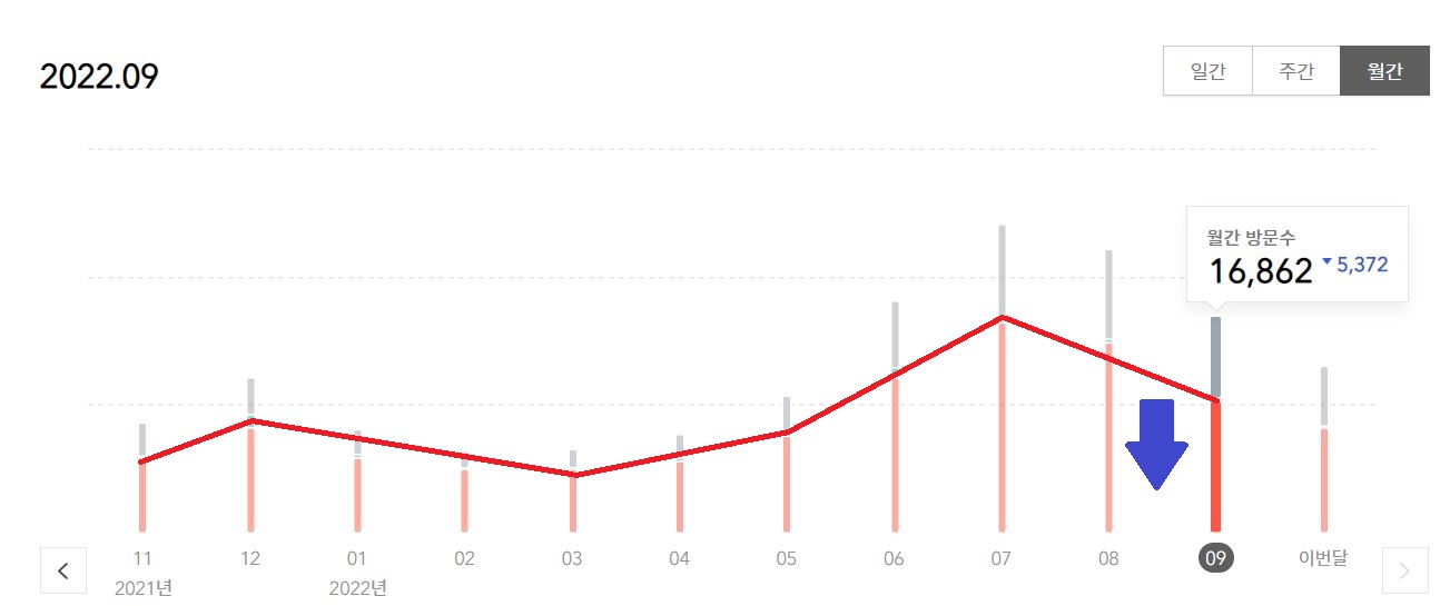 방문자수는 전월 대비 5,372 감소되었습니다.