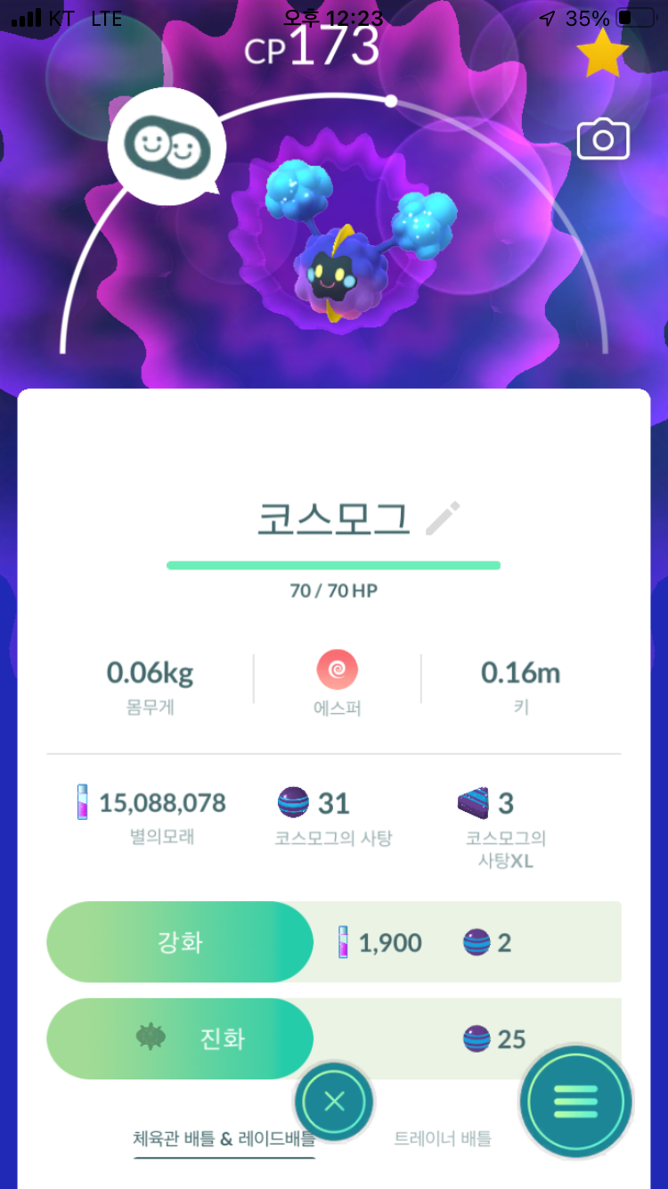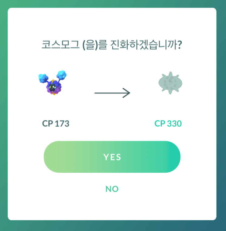 포켓몬고 진화 이벤트를 통해 코스모그를 진화했습니다.