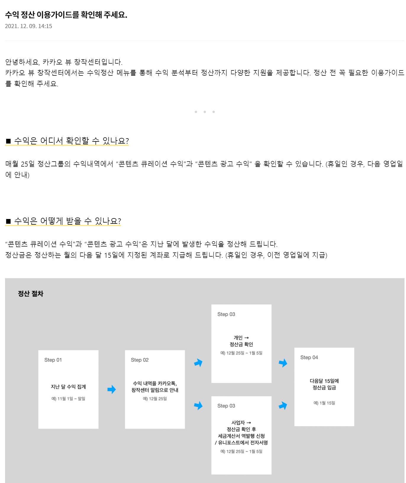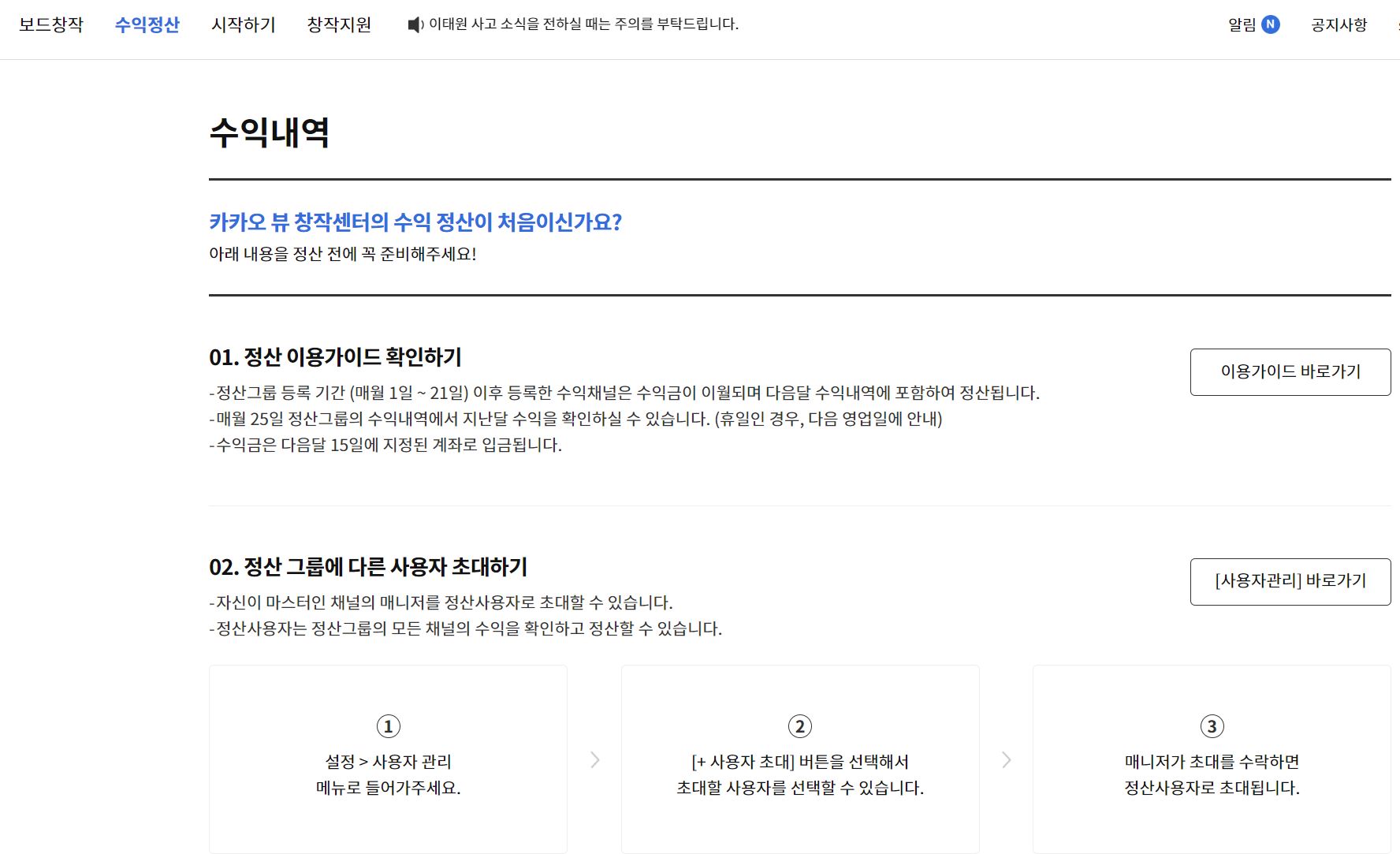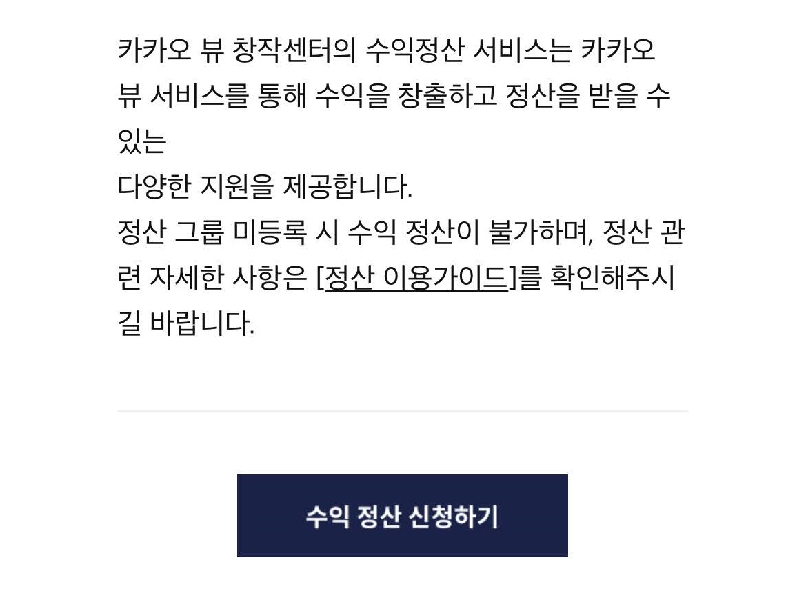 카카오뷰, 신청 9일 만에 창작센터 수익정산 신청