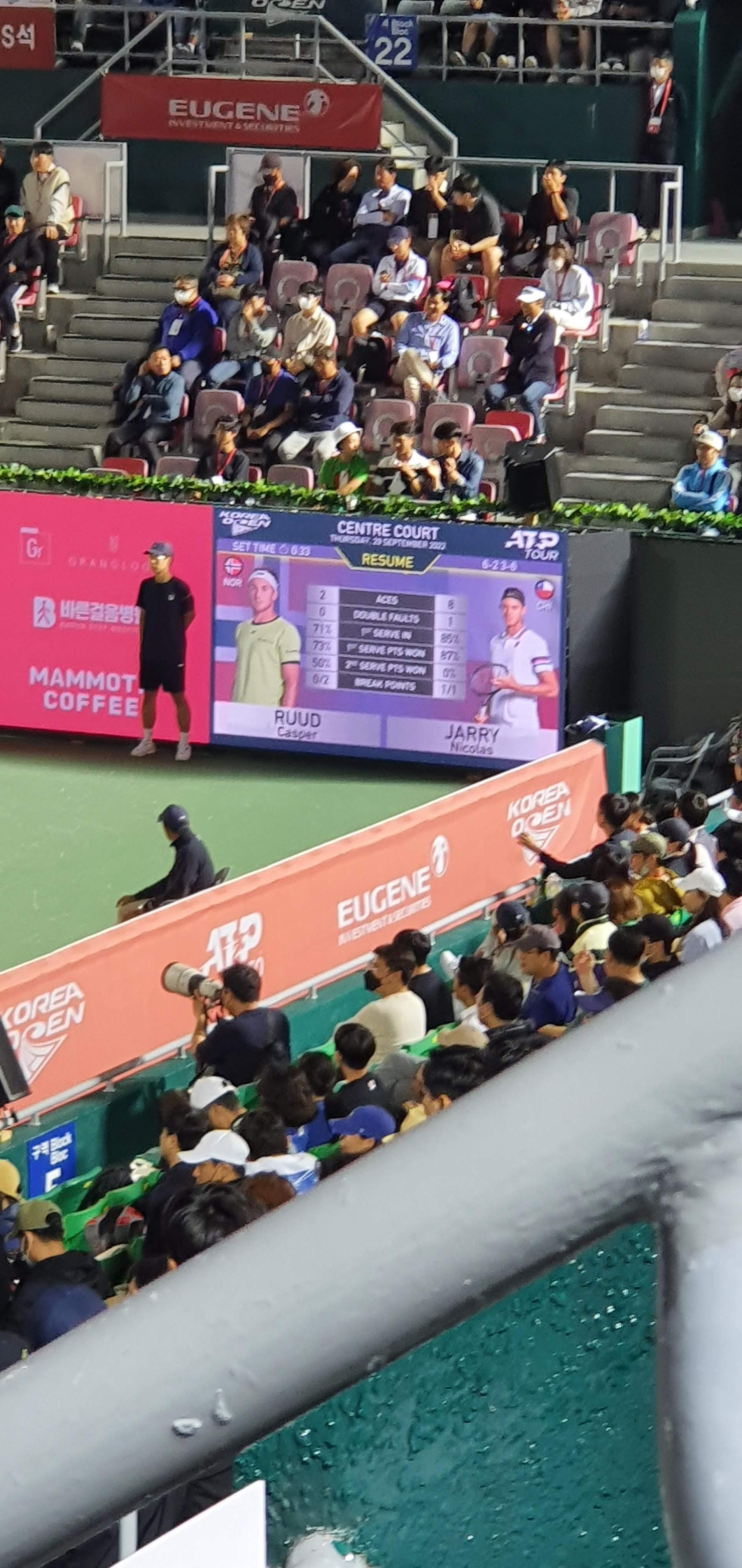 권순우 선수의 경기가 끝나고, C.루드 VS N.제리 경기도 직관했어요.