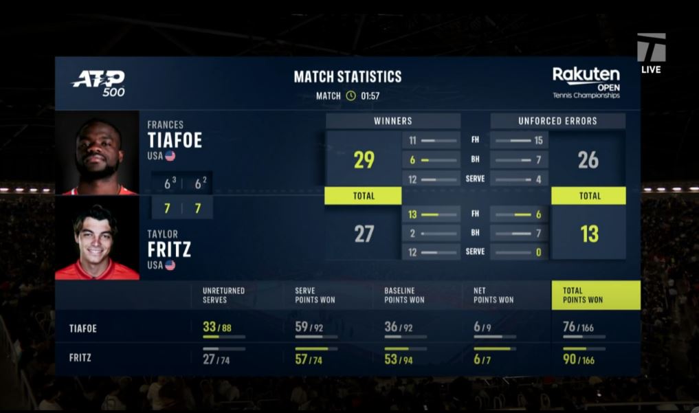 타이브레이크 접전 끝에 프리츠 선수가 승리했어요.
