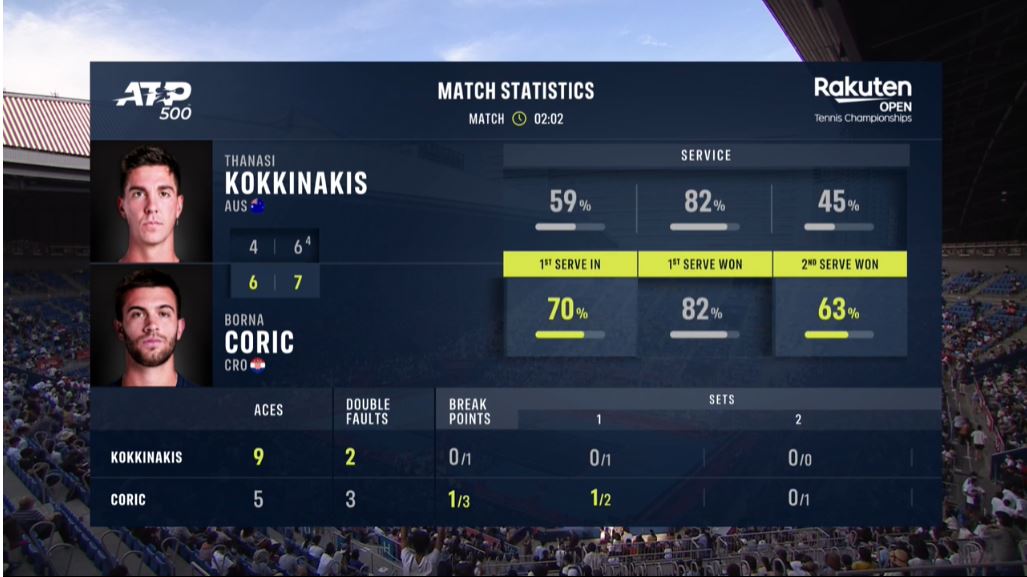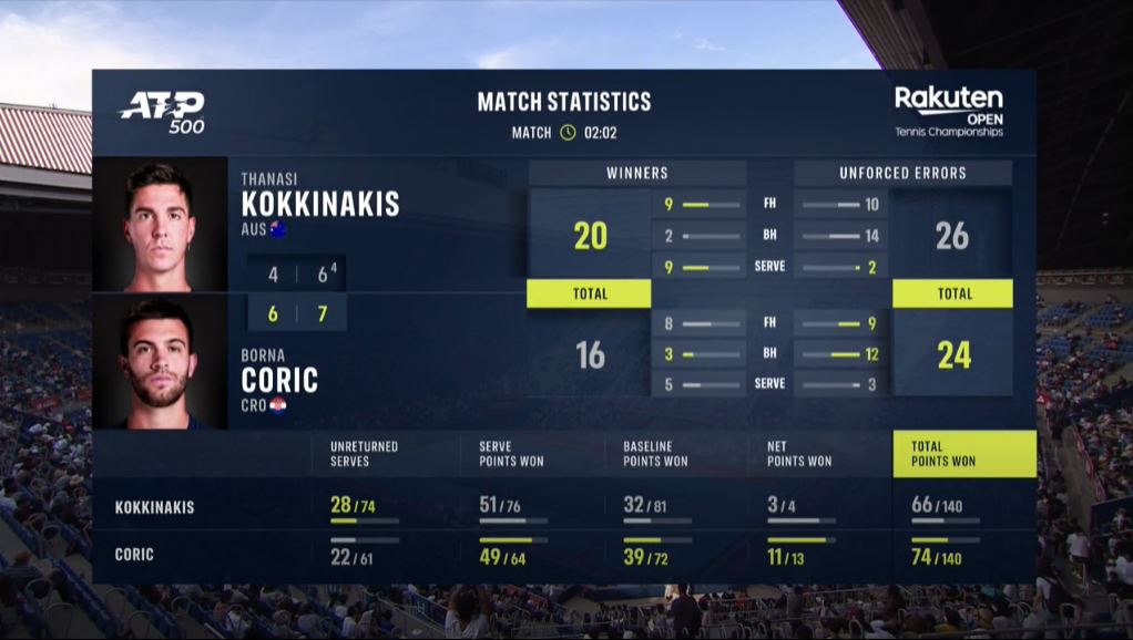 코리치 선수는 32강전 경기에서 T.코키나키스 선수와 대결했습니다.