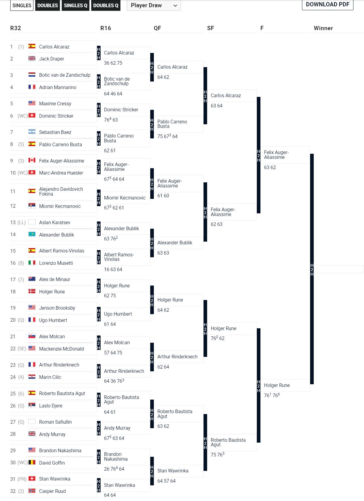 결승에서는 루네와 오제 알리아심이 붙게 되었습니다.
