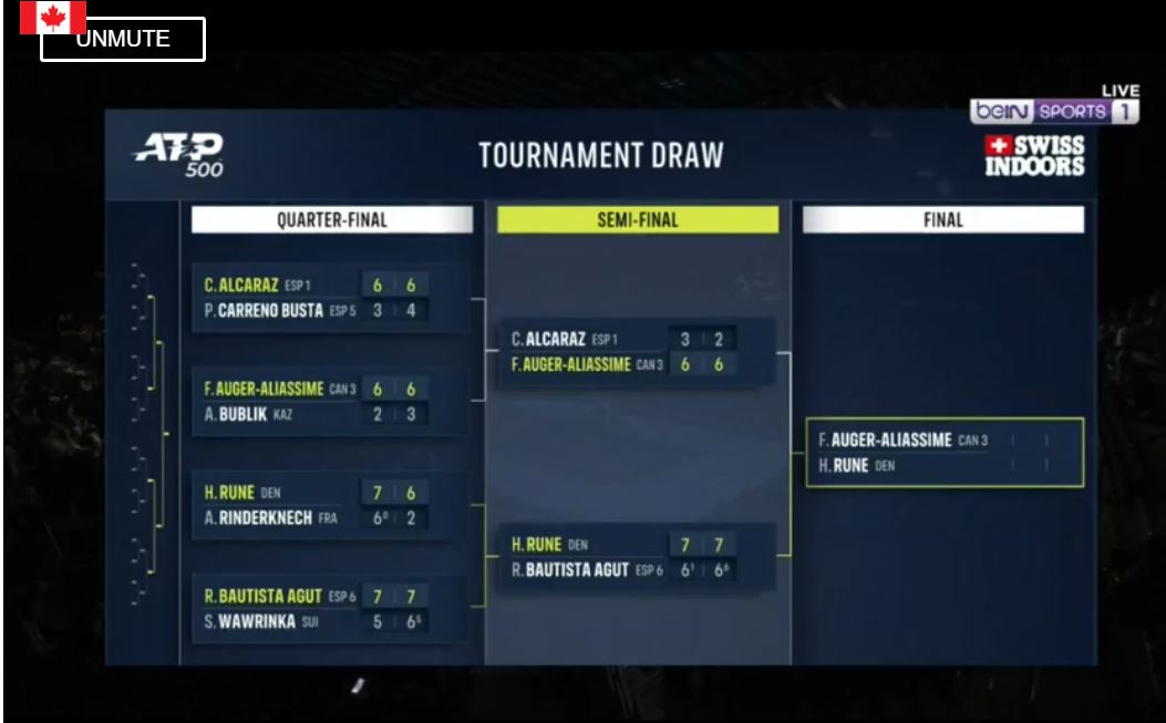 결승에서는 루네와 오제 알리아심이 붙게 되었습니다.