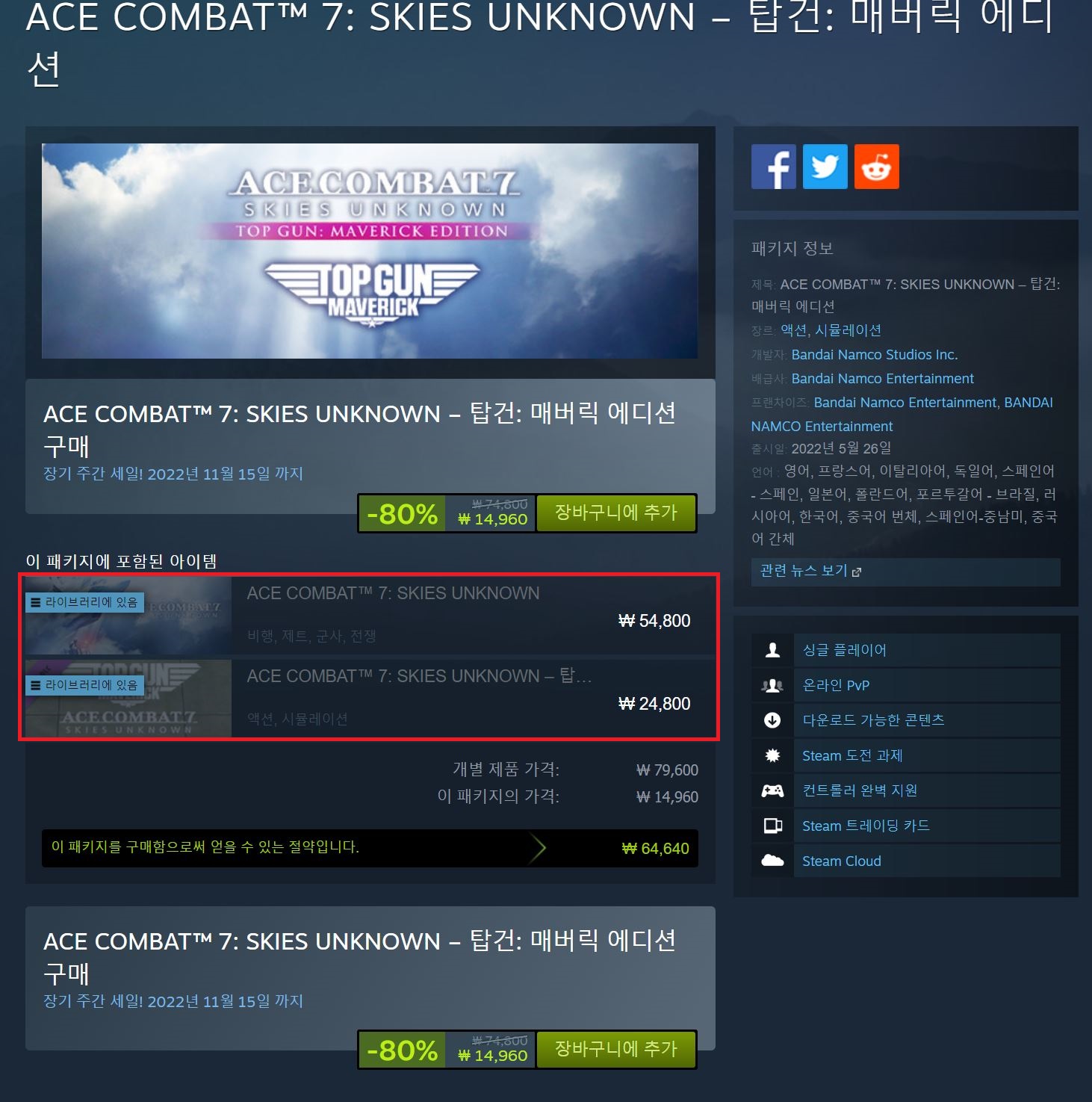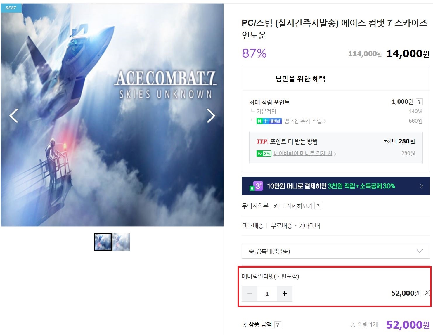 에이스 컴뱃 7 구입을 고려하셨던 분들이라면, 지금 스팀에서 할인하고 있는 가격이 괜찮은 가격으로 보입니다.