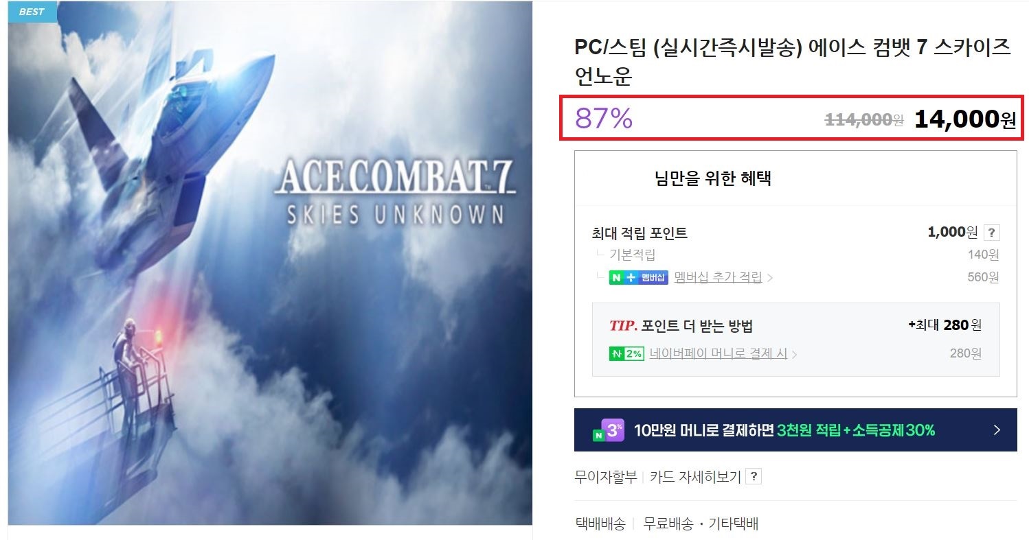우선 에이스 컴뱃7의 경우 14,000원