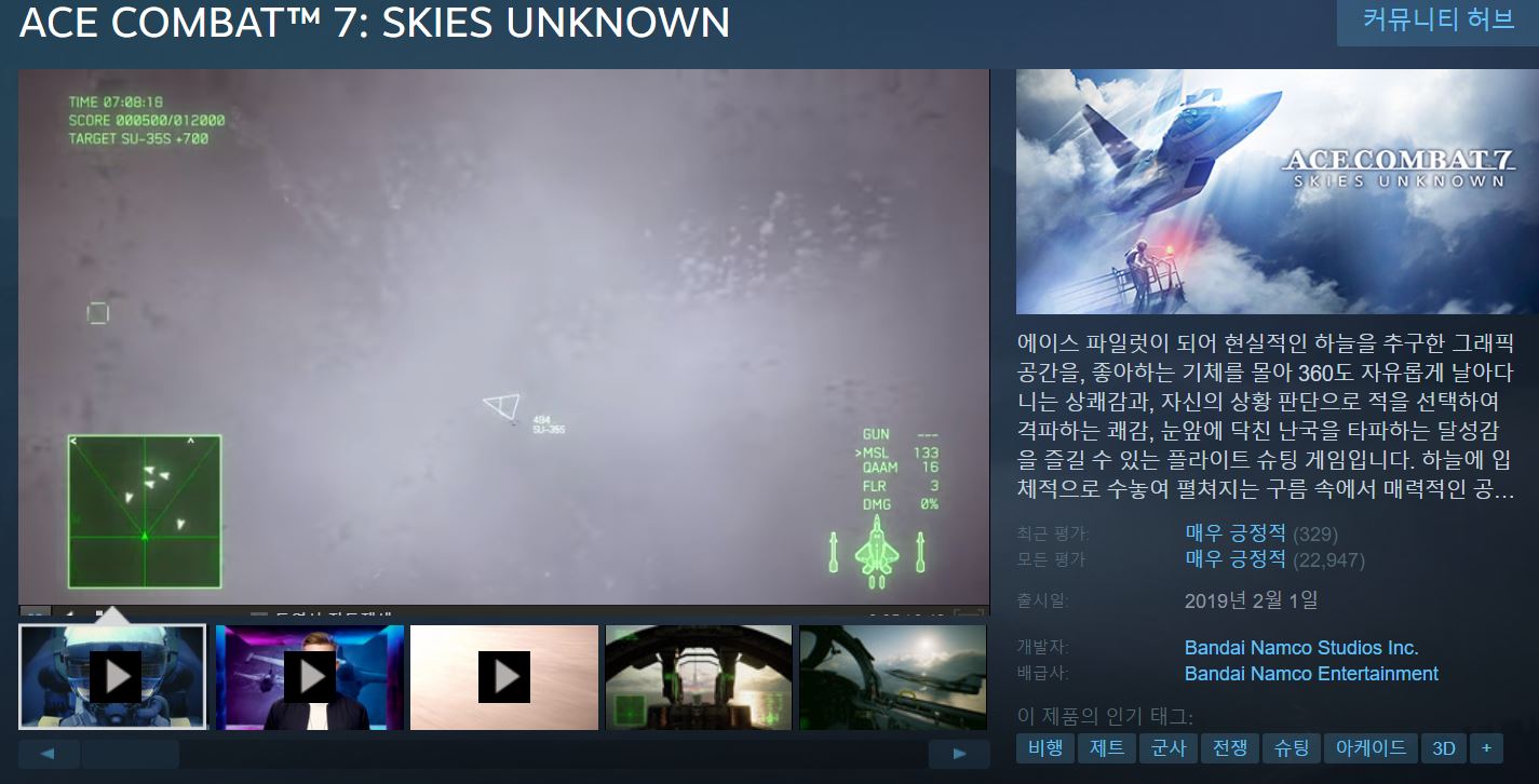 에이스 컴뱃 7 구입을 고려하셨던 분들이라면, 지금 스팀에서 할인하고 있는 가격이 괜찮은 가격으로 보입니다.