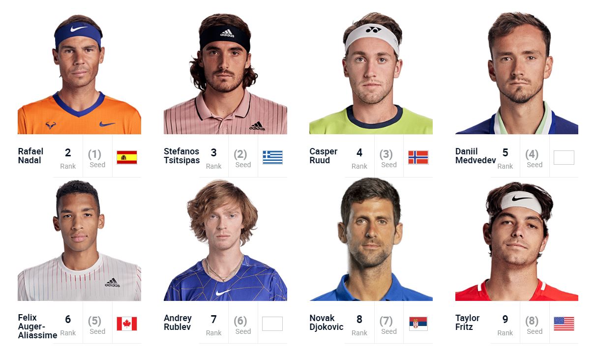 레드 그룹 : 스테파노 치치파스, 다닐 메드베데프, 안드레이 루블레프, 노박 조코비치