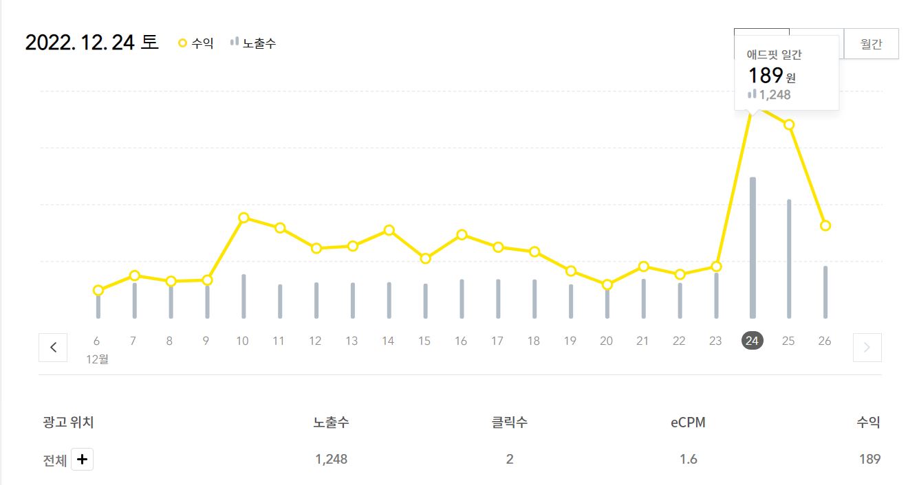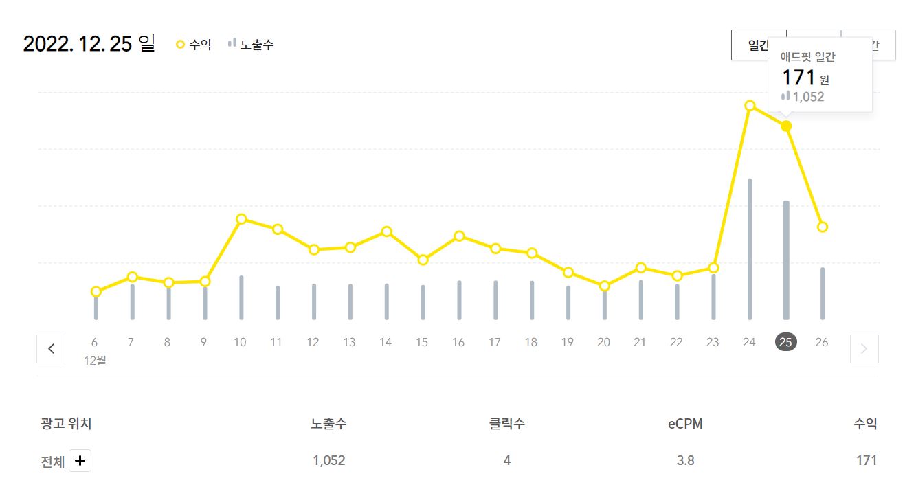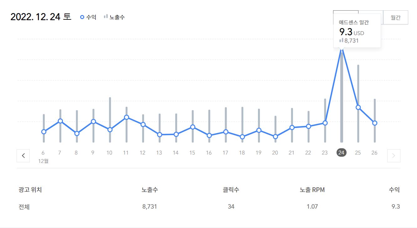 산타 할아버지 관련글로 수익이 상당히 높았습니다.