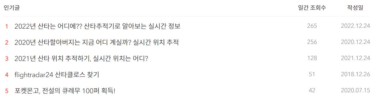 크리스마스 기간에는 산타 할아버지 관련글이 인기가 많았습니다.