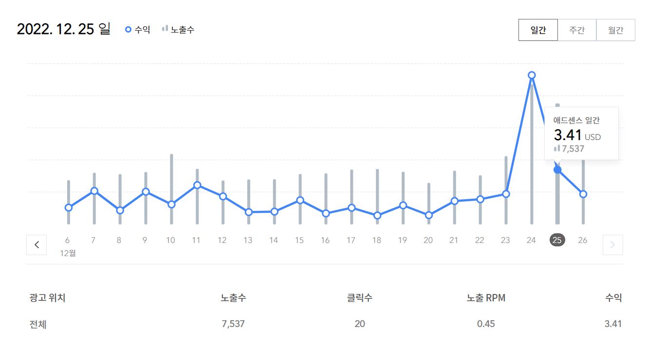 구글 애드센스 일일 수익