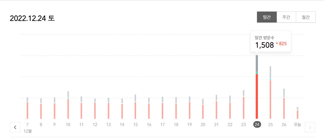 | 티스토리, 방문자 1,500명 돌파 (0) | 2022.12.25 |