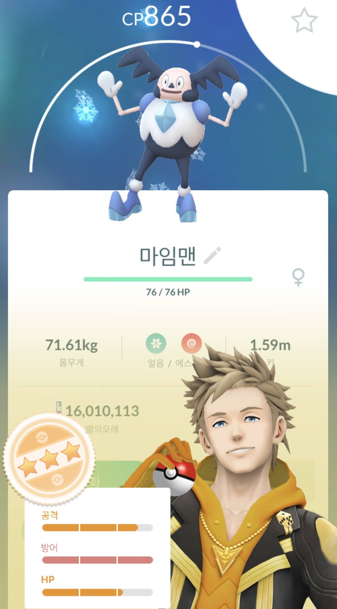 100% 혹은 색이 다른 마임맨이 아니라 나중에 반짝 교환으로 만들고 진화해야겠습니다.