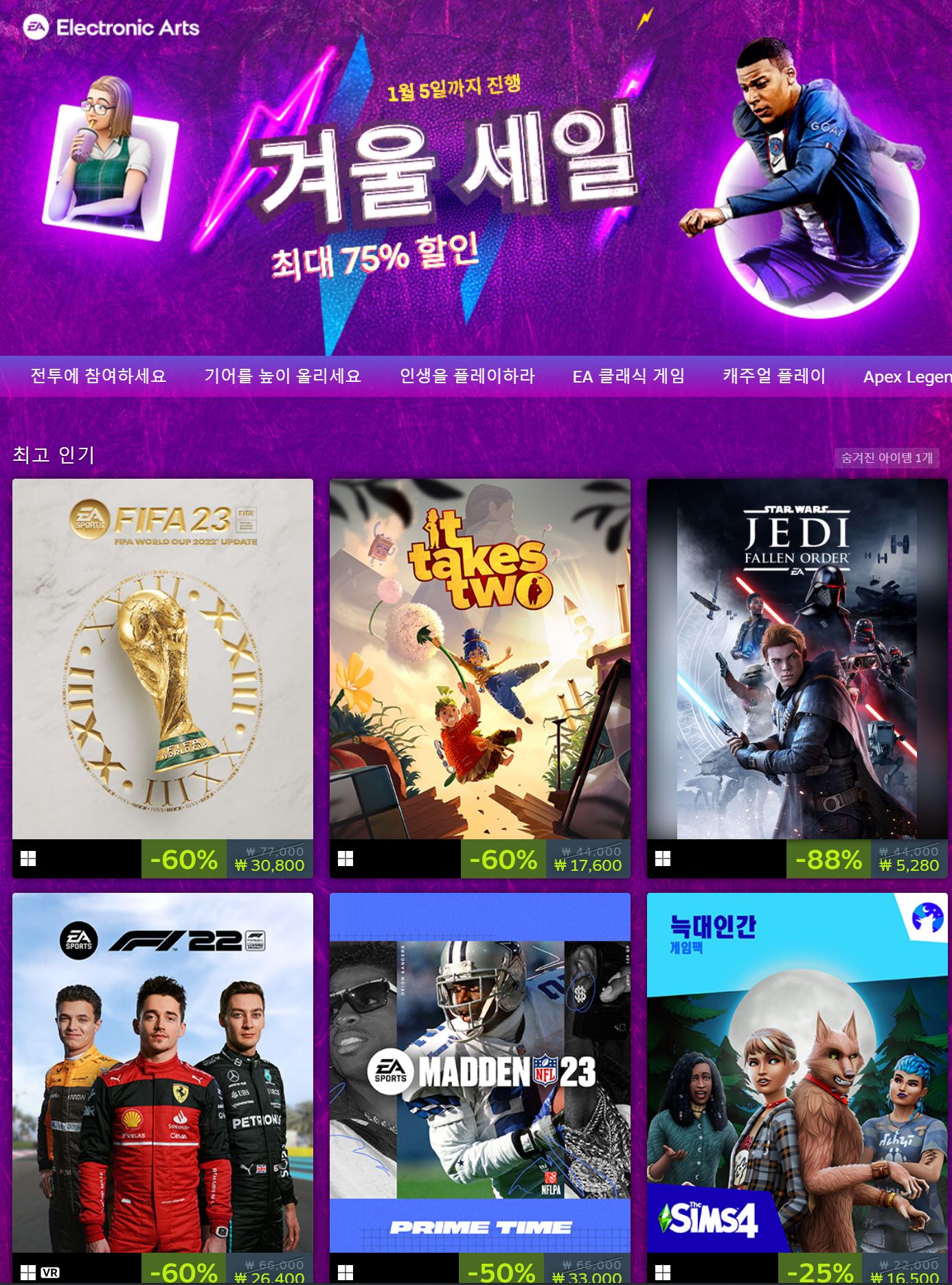 스팀 겨울 세일로 접속하면 할인 게임 리스트를 확인할 수 있습니다.