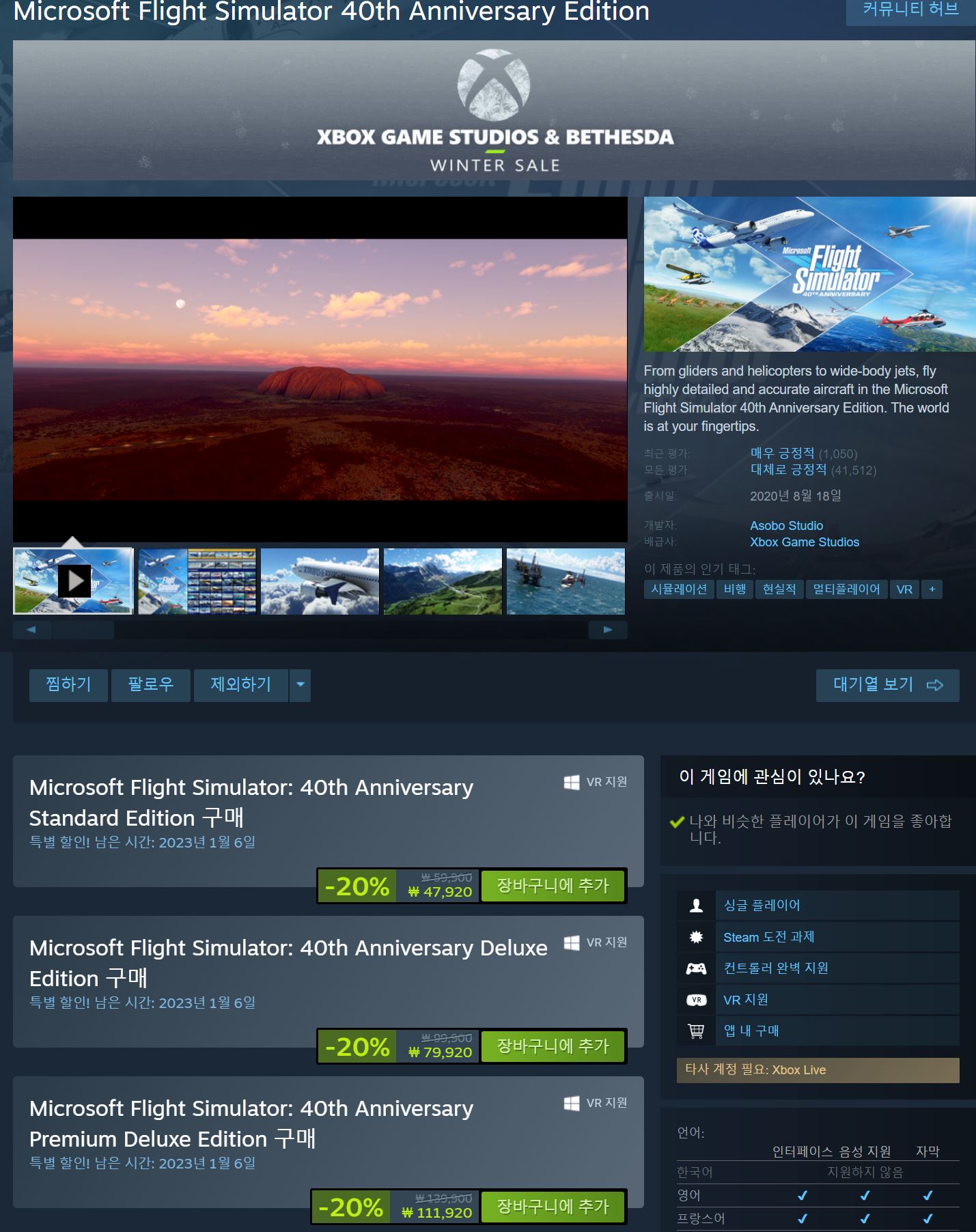 비행 시뮬 게임 이야기는 그만하고, 겨울 세일 이야기~