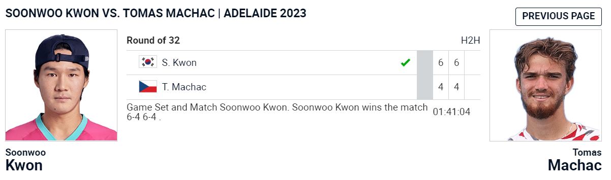 | 테니스, ATP250 2023 Adelaide International 2 예선 권순우 VS 마쉑 (0) | 2023.01.09 |