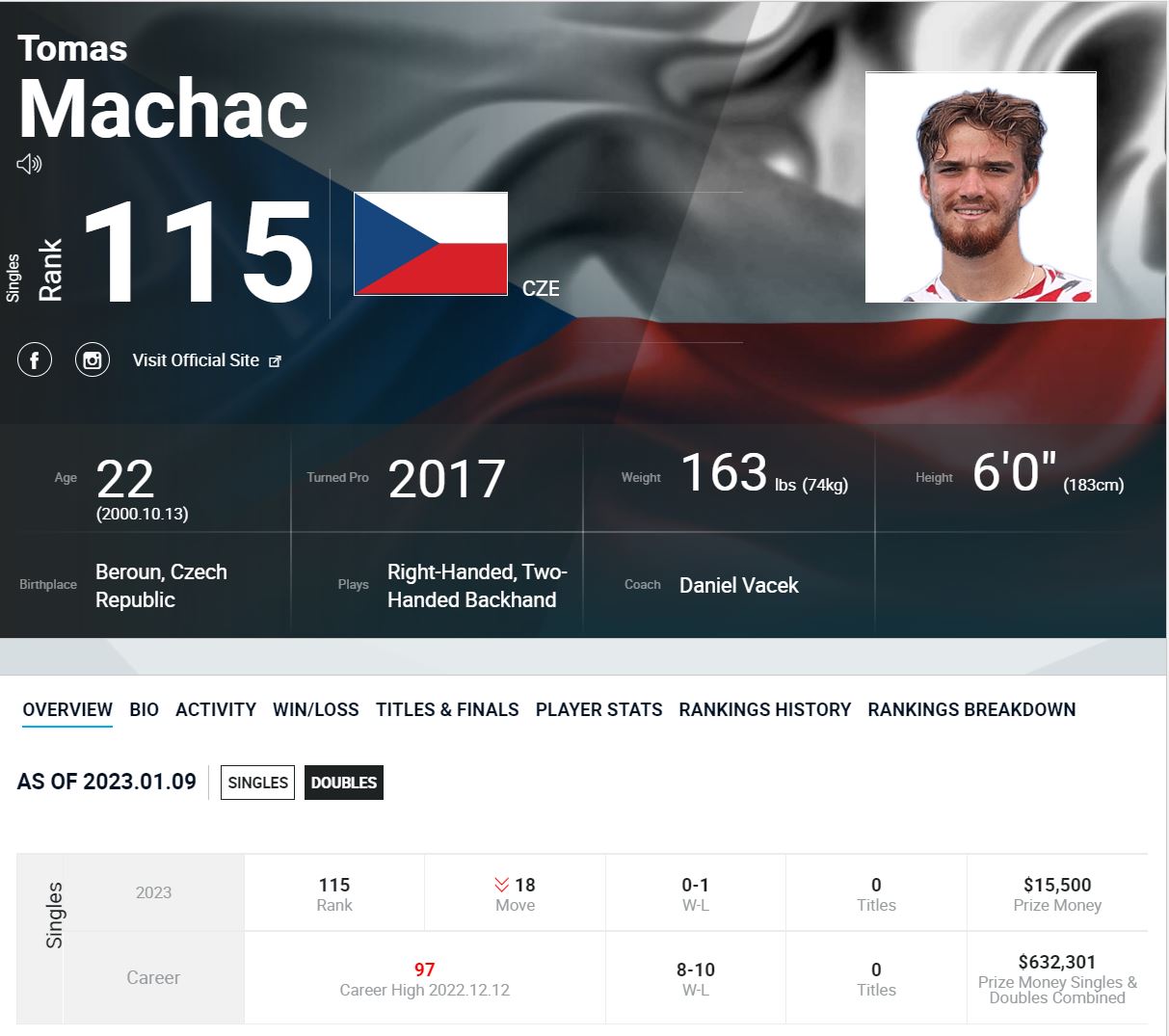 마쉑 선수는 체코 선수로 하루 만에 랭킹이 97위 -> 115위로 변경되었습니다.