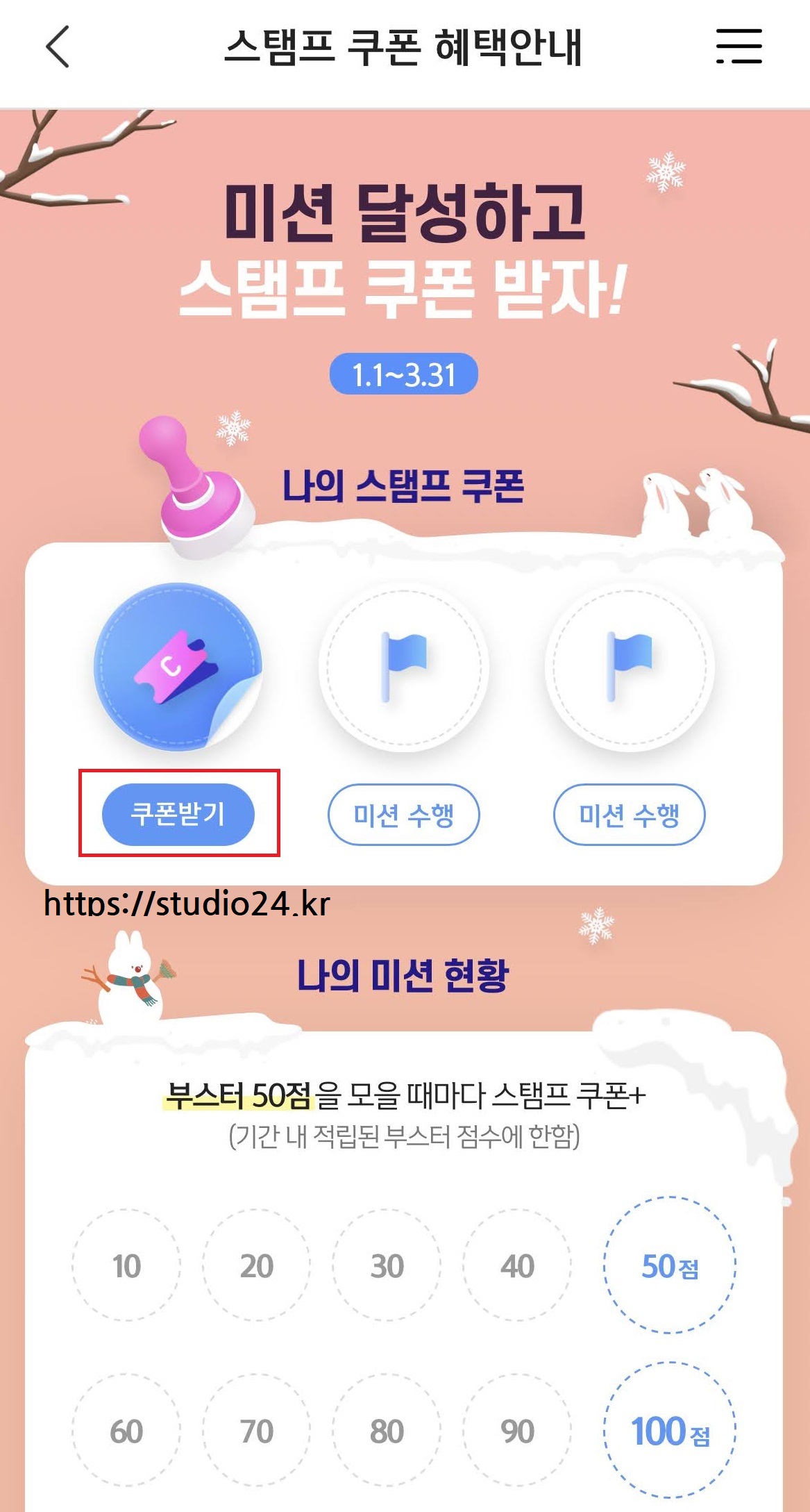 분기 1회 년 4회 무료 선택이 가능하고, 미션을 달성하면 추가 쿠폰이 생겨요.
