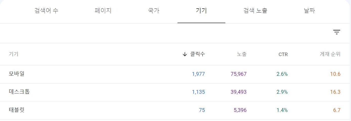 전 월과 비교해서 클릭수와 검색 노출이 증가되었습니다.