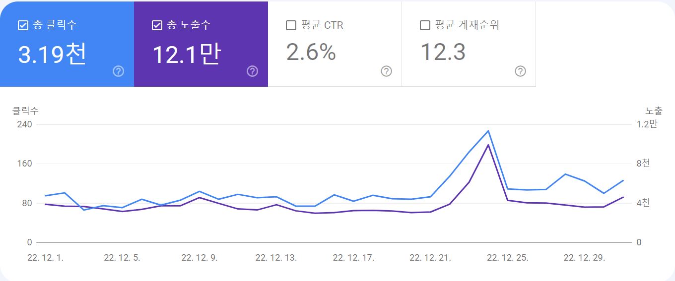 2022년 12월 검색 실적입니다