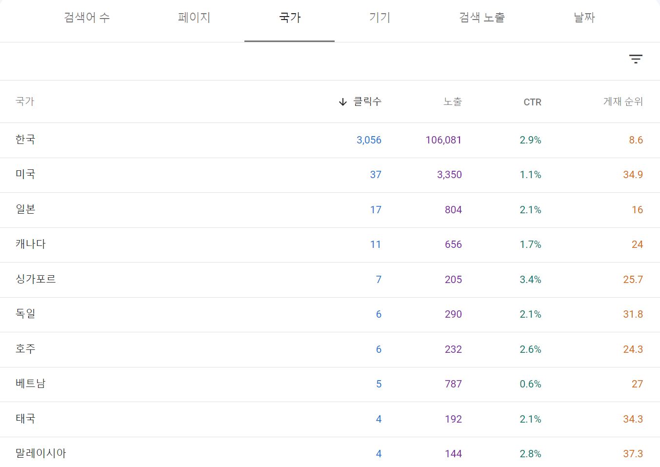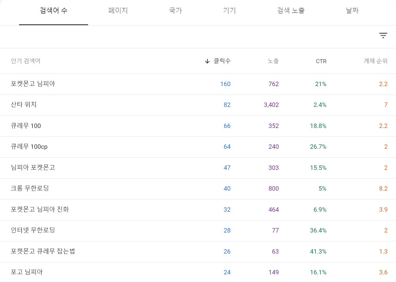 검색 클릭수