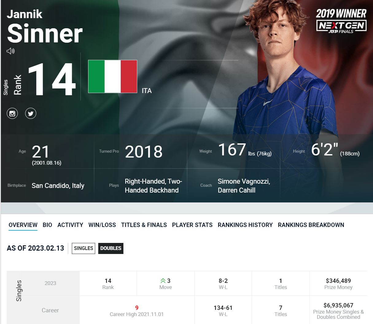 Jannik Sinner (이탈리아, 14위)