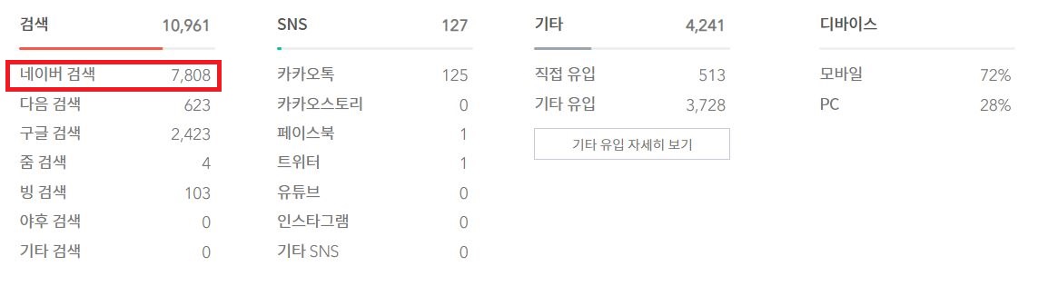 네이버 검색이 계속 높은 비중으로 확인되고 있습니다.