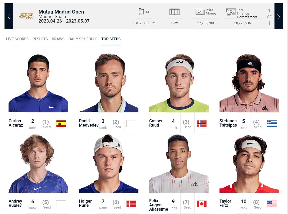 | 테니스, ATP1000 2023 Mutua Madrid Open 8강 알카라스 VS 카차노프 (0) | 2023.05.04 |