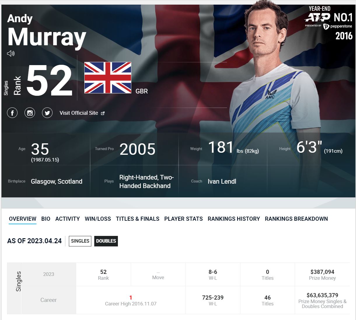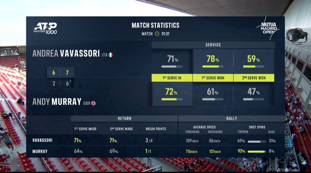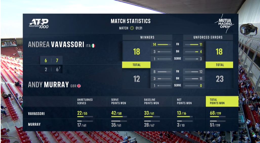 상대 선수가 잘해주었고, A.머리는 클레이 코트가 약간 힘든 거 아닌가 생각이 들었습니다.