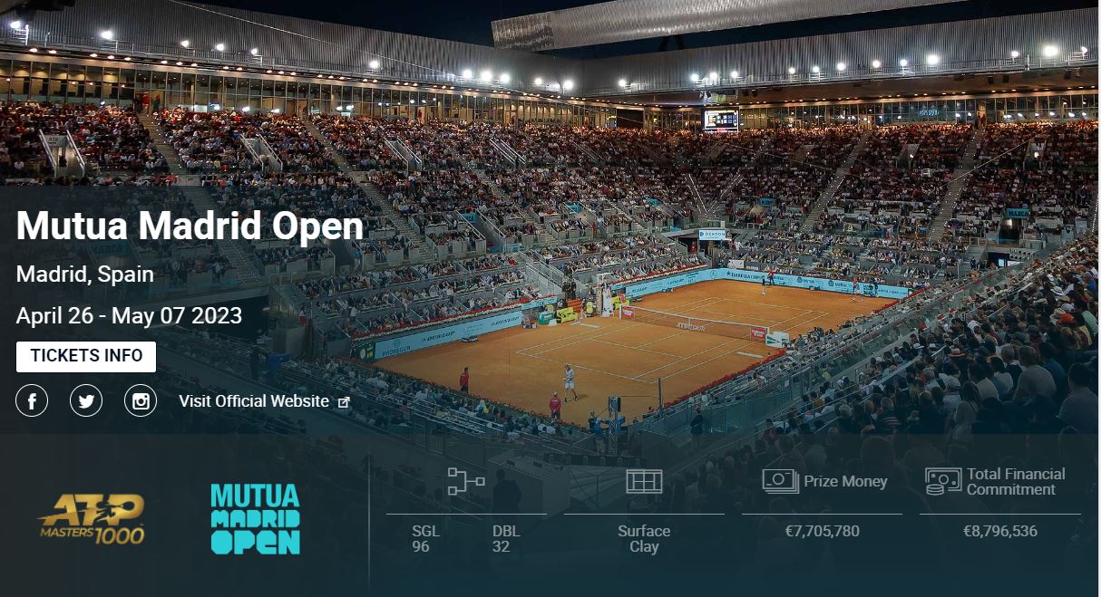 스페인 마드리드에서 열리는 대회로 ATP 투어 마스터스 1000 대회입니다.