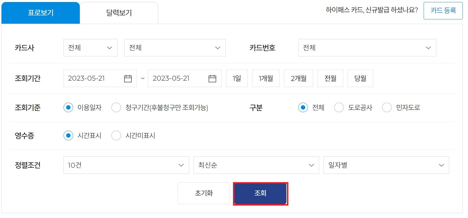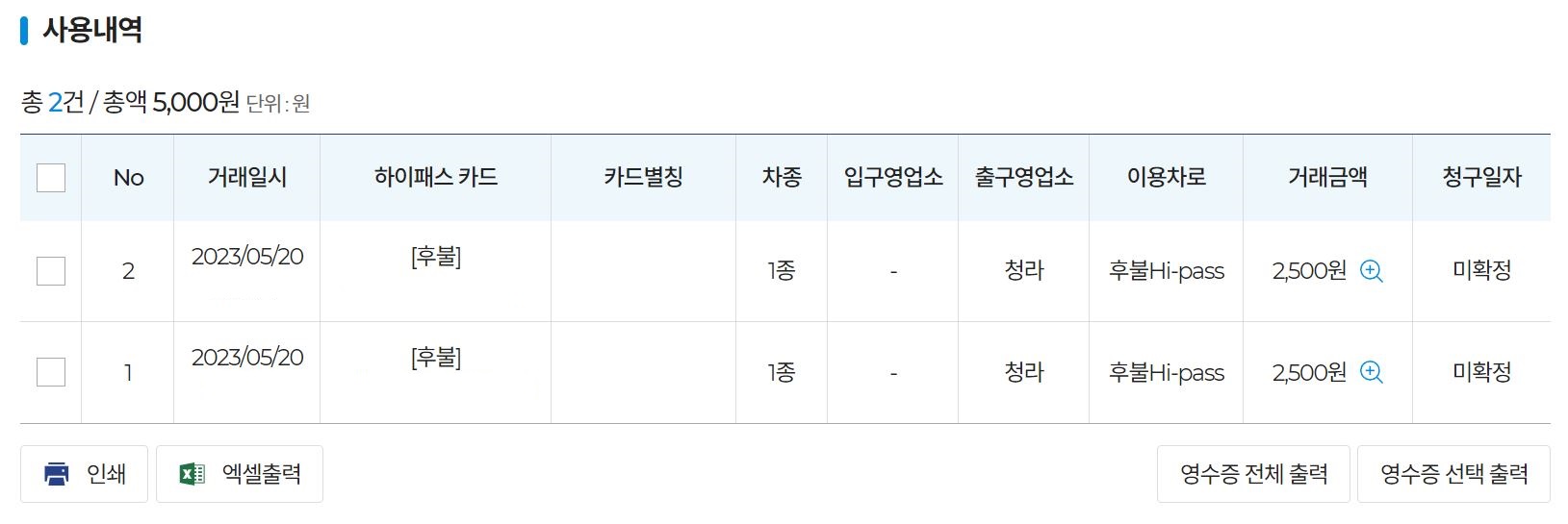 후불 하이패스를 사용하고 있으니 신용카드사 홈페이지에 들어갔으나 확인 불가능
