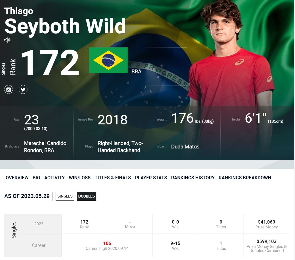 클레이 코트를 뛰고 있고 프로 데뷔는 2018년에 했습니다.