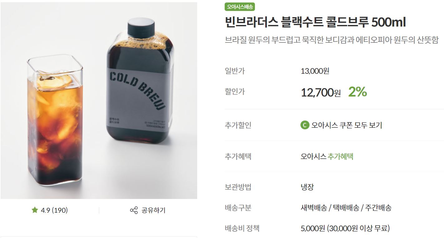주문한 상품은 빈브라더스 블랙수트 콜드브루 500ml