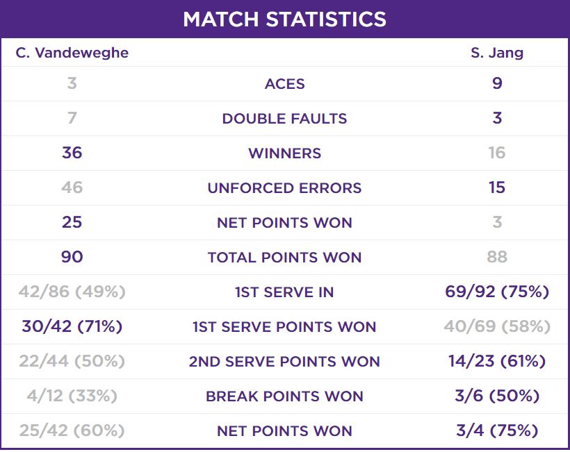 상대 선수는 미국의 코코 밴더웨이 선수로 랭킹은 192위입니다.