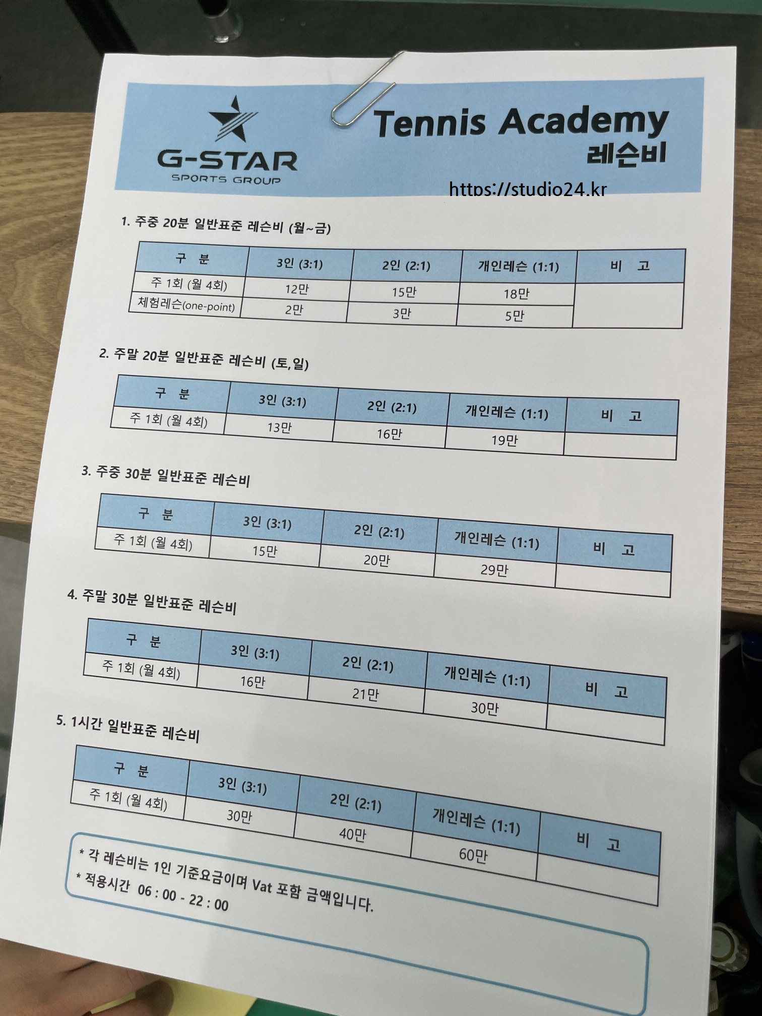 테니스 아카데미가 정식 레슨을 시작합니다.