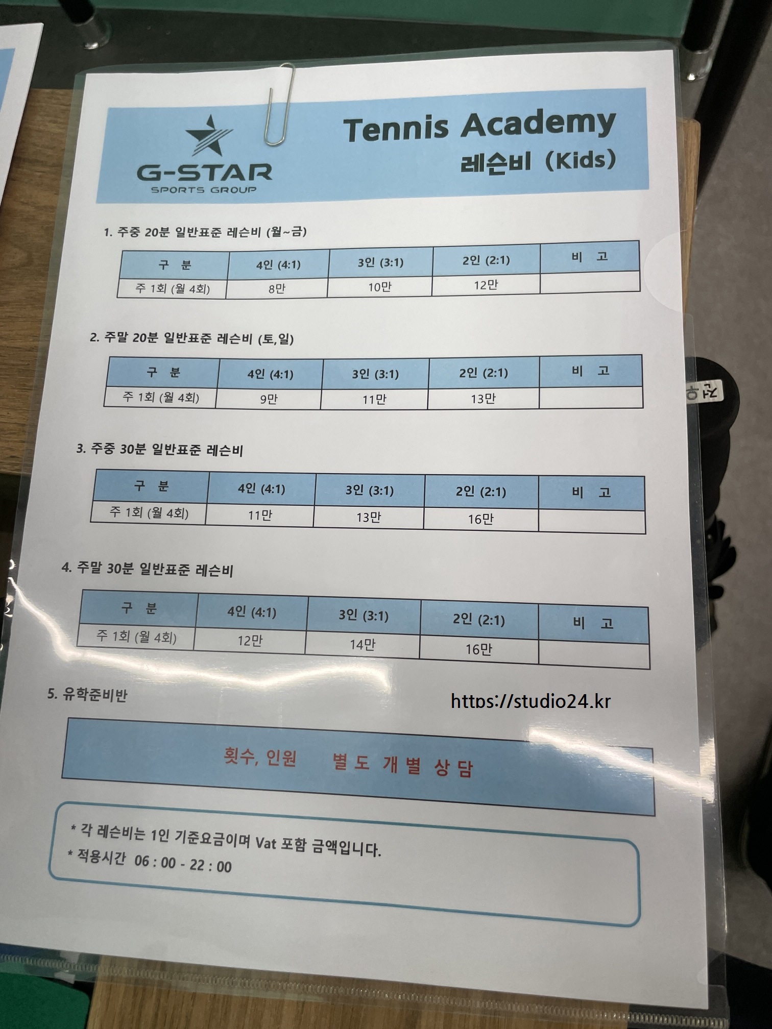 기존 풋살(축구) 아카데미와 더불어 테니스가 오픈되었습니다.