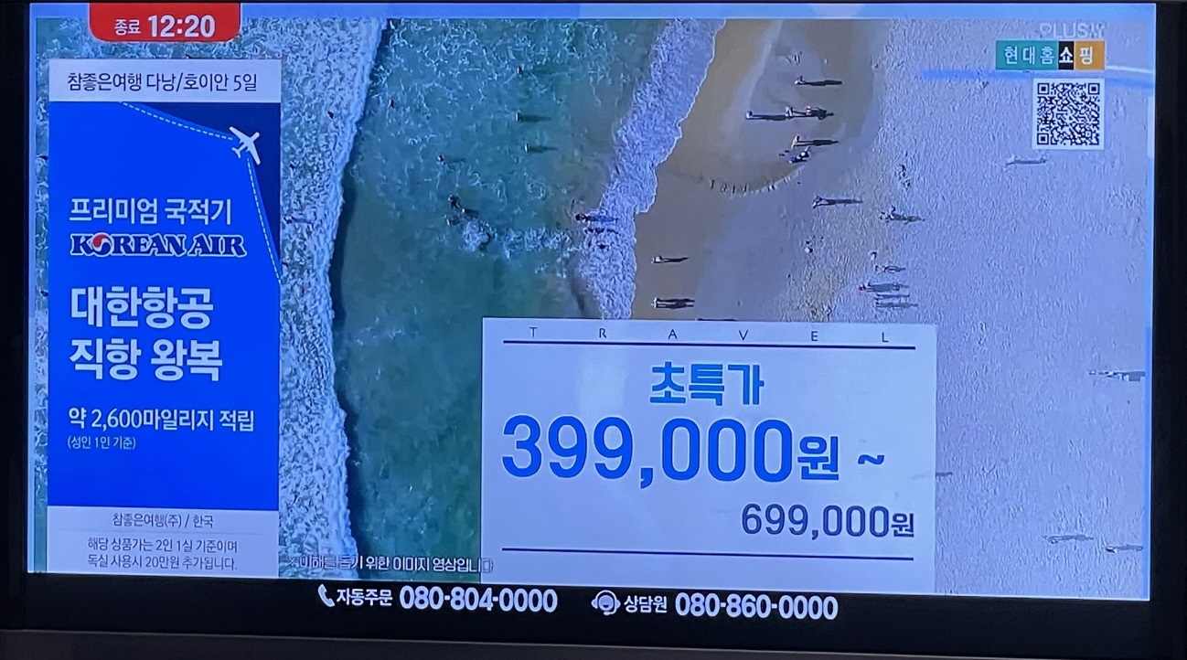 TV 채널을 돌리다 발견한 홈쇼핑 여행 특가 상품