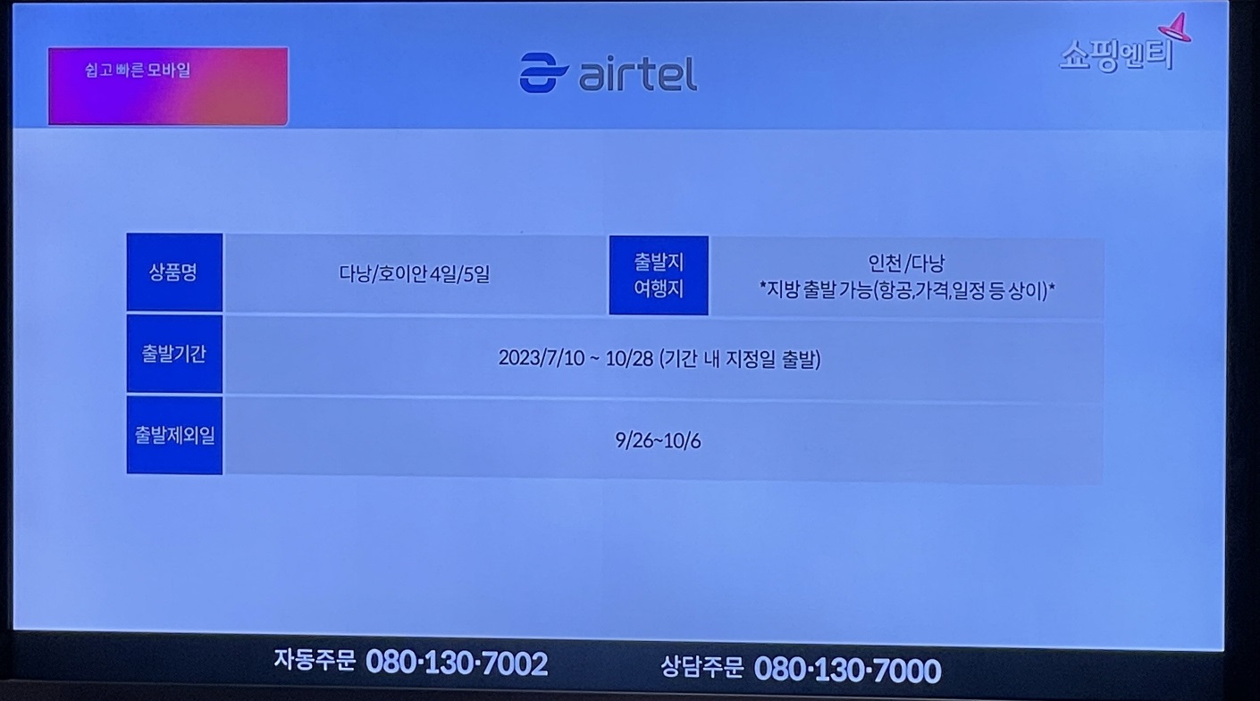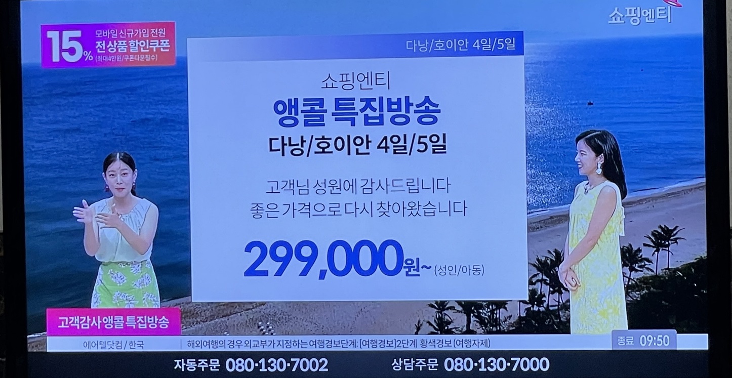 계속 홈쇼핑에서 다낭/호이안 여행 상품이 판매되고 있습니다.