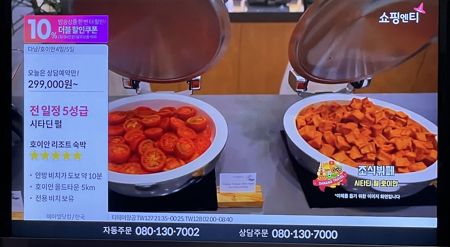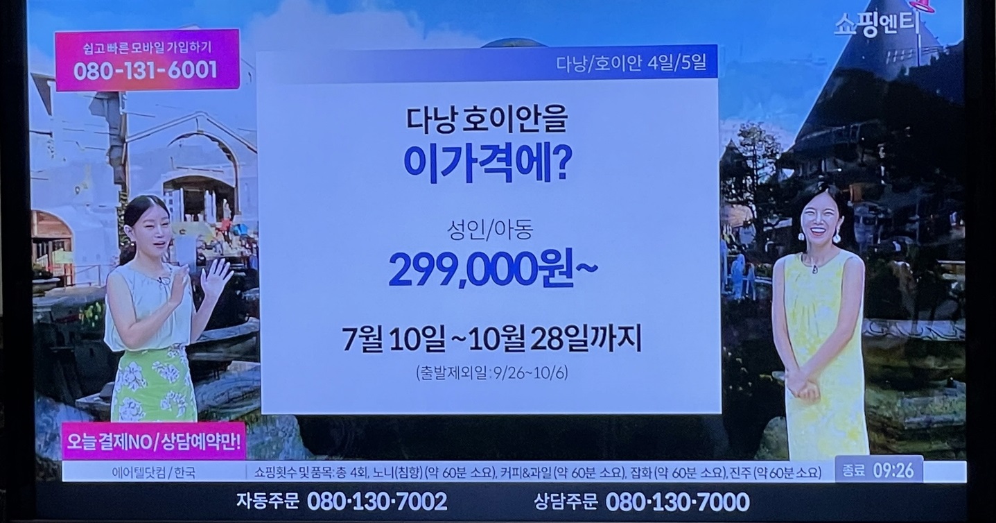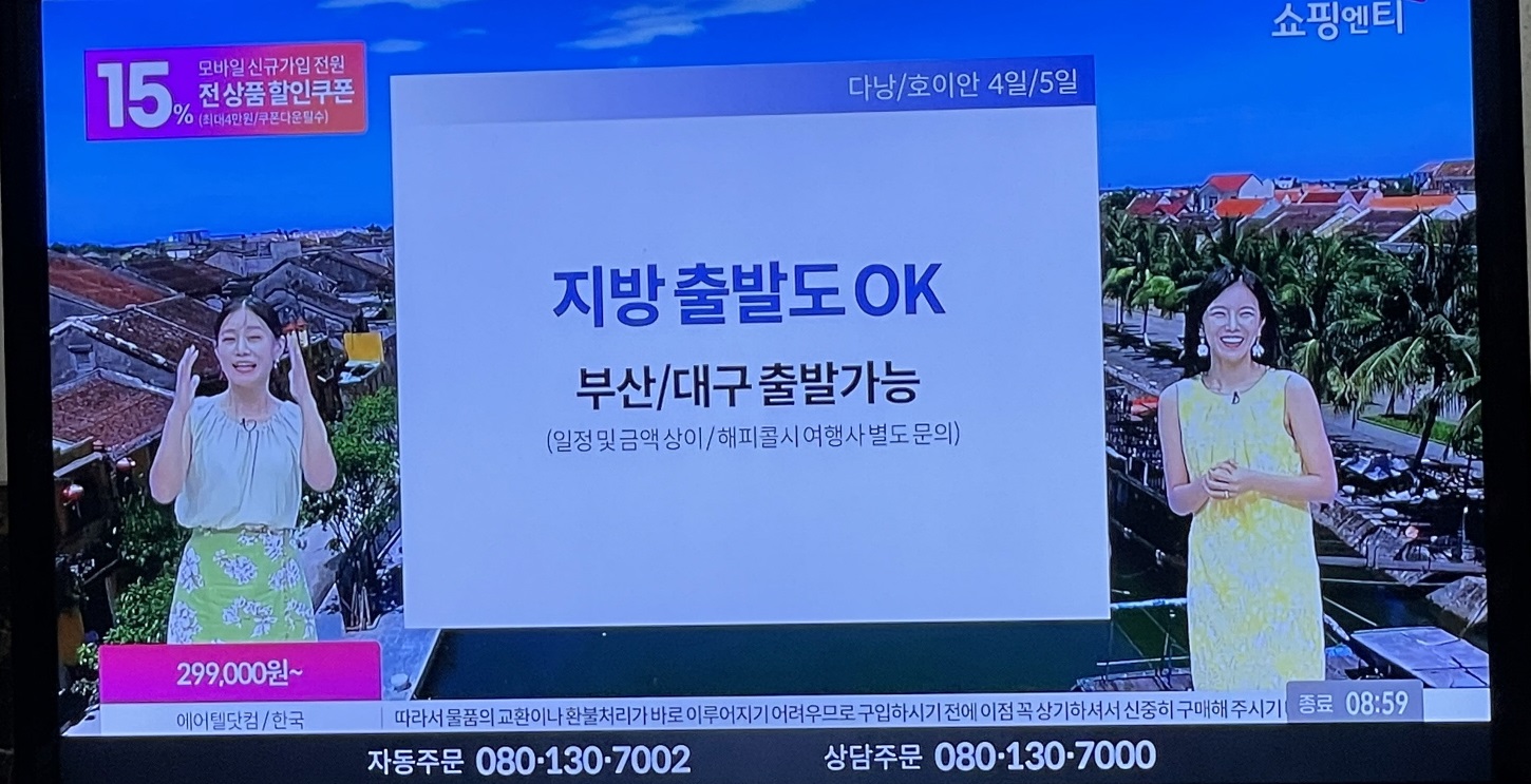 계속 홈쇼핑에서 다낭/호이안 여행 상품이 판매되고 있습니다.