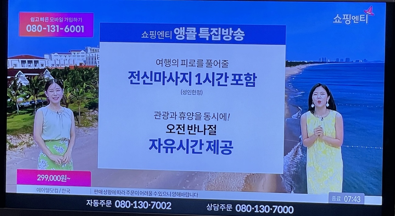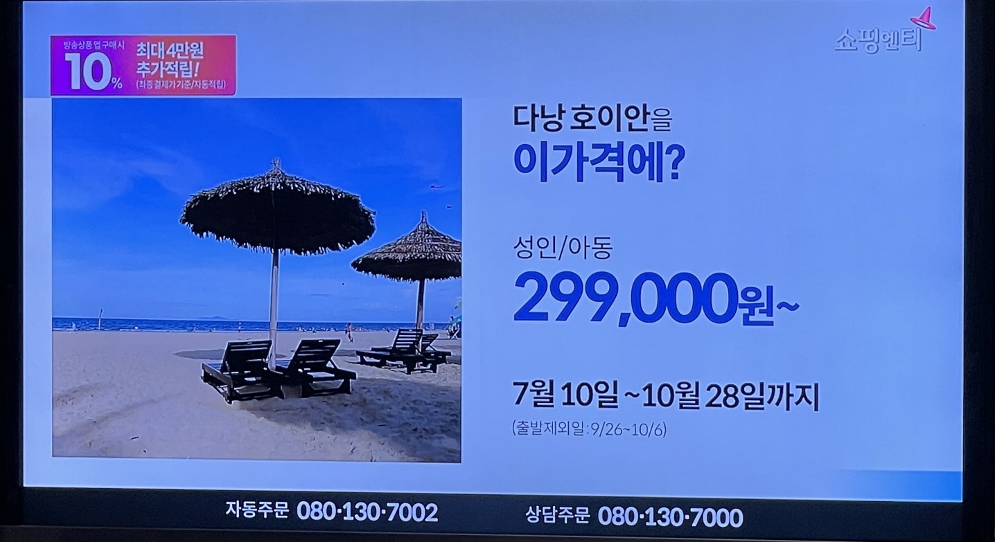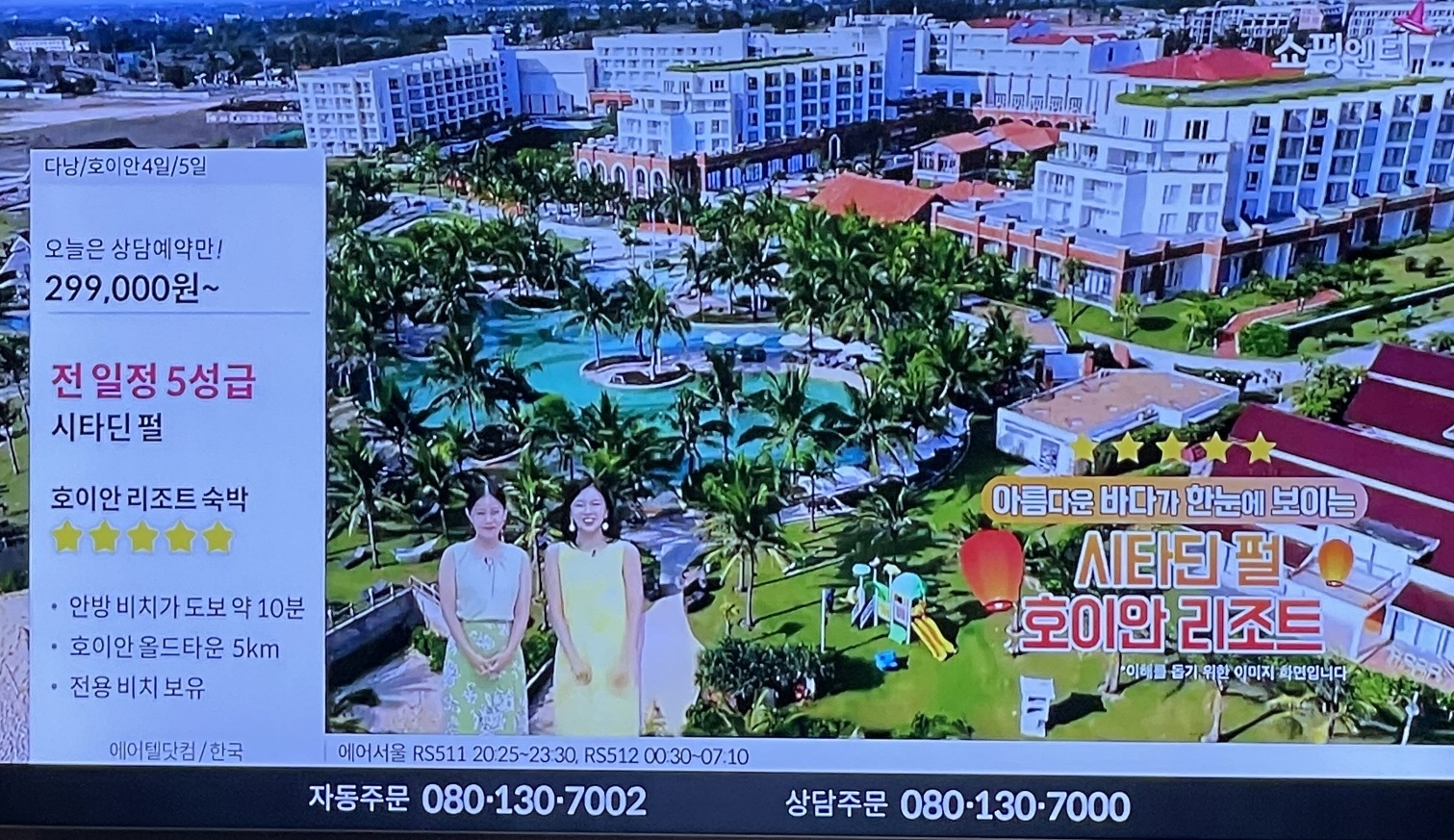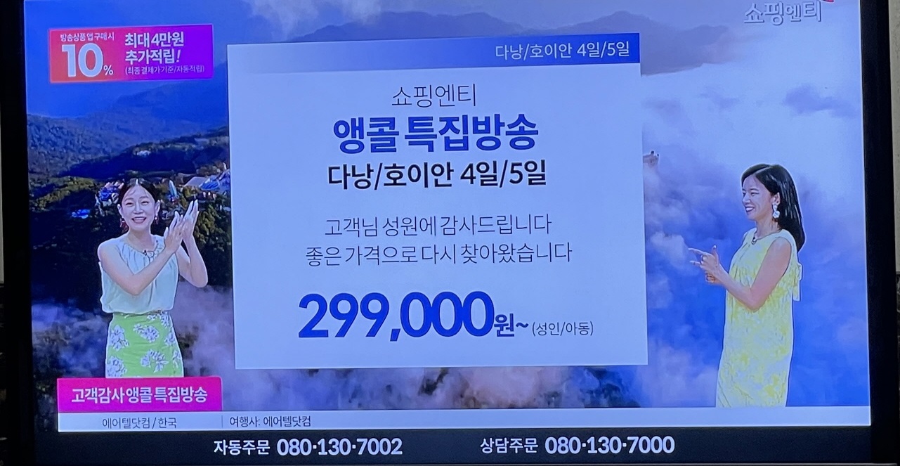 계속 홈쇼핑에서 다낭/호이안 여행 상품이 판매되고 있습니다.