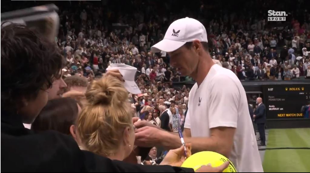 경기가 끝나고, 싸인해주고 있는 앤디 머리