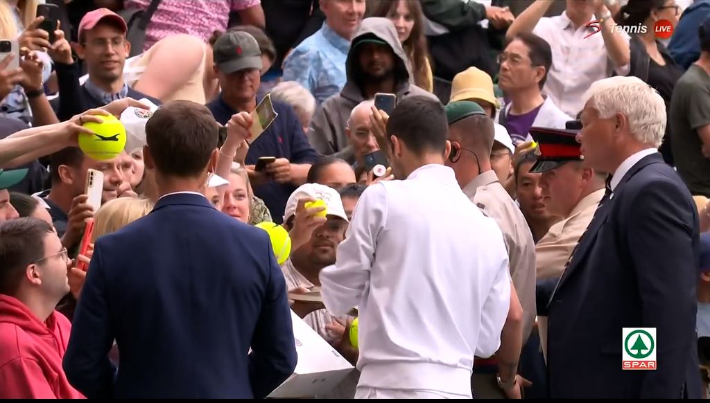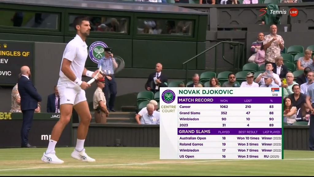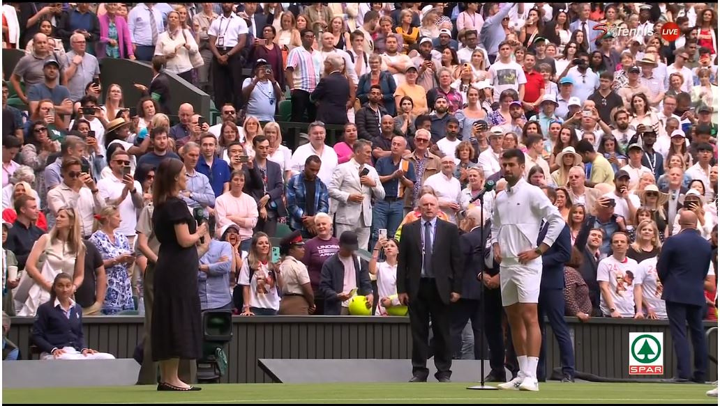 조코비치 선수가 소개되고 있습니다.