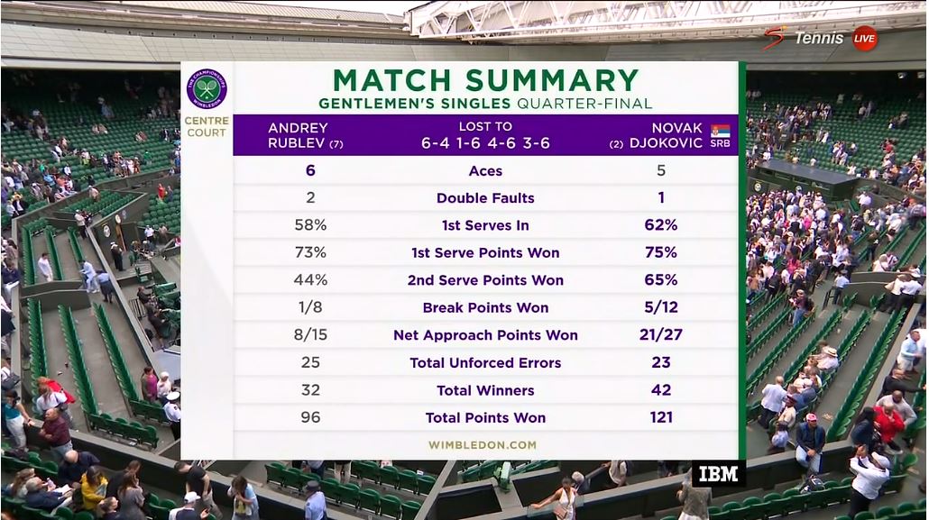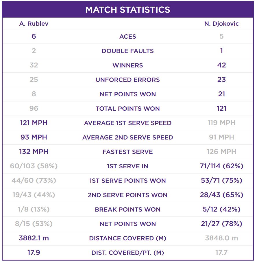 루블레프 vs 조코비치 경기 결과입니다.