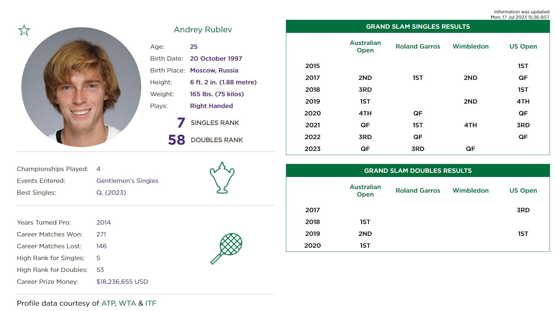 루블레프, 세계 랭킹 7위