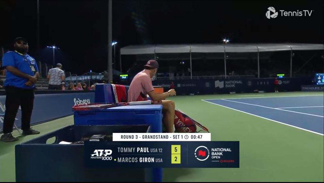루네 선수와의 경기에서 모든 전력을 다 쏟아부어 체력이 떨어진 모습을 계속 보여주었습니다.