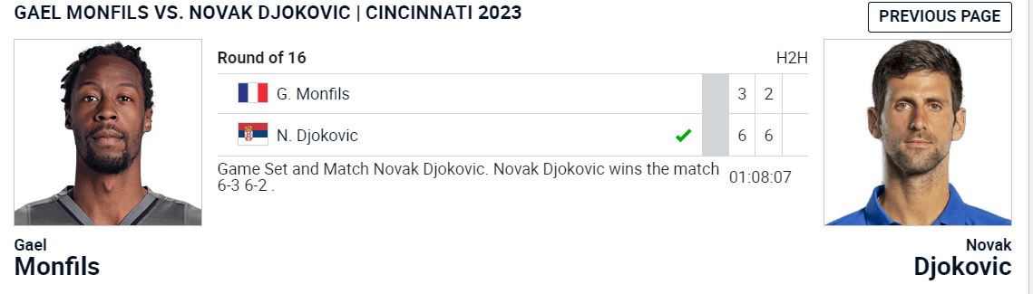 GAEL MONFILS VS NOVAK DJOKOVIC