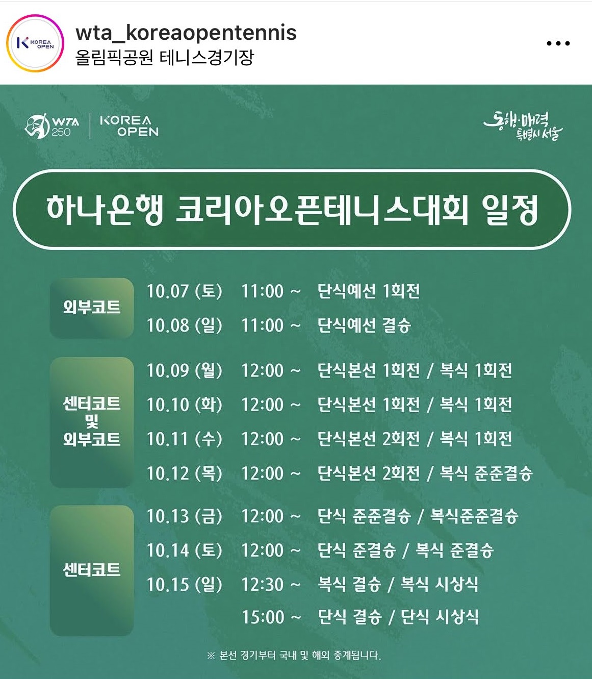WTA_KOREA OPEN TENNIS 공식 인스타 참고
