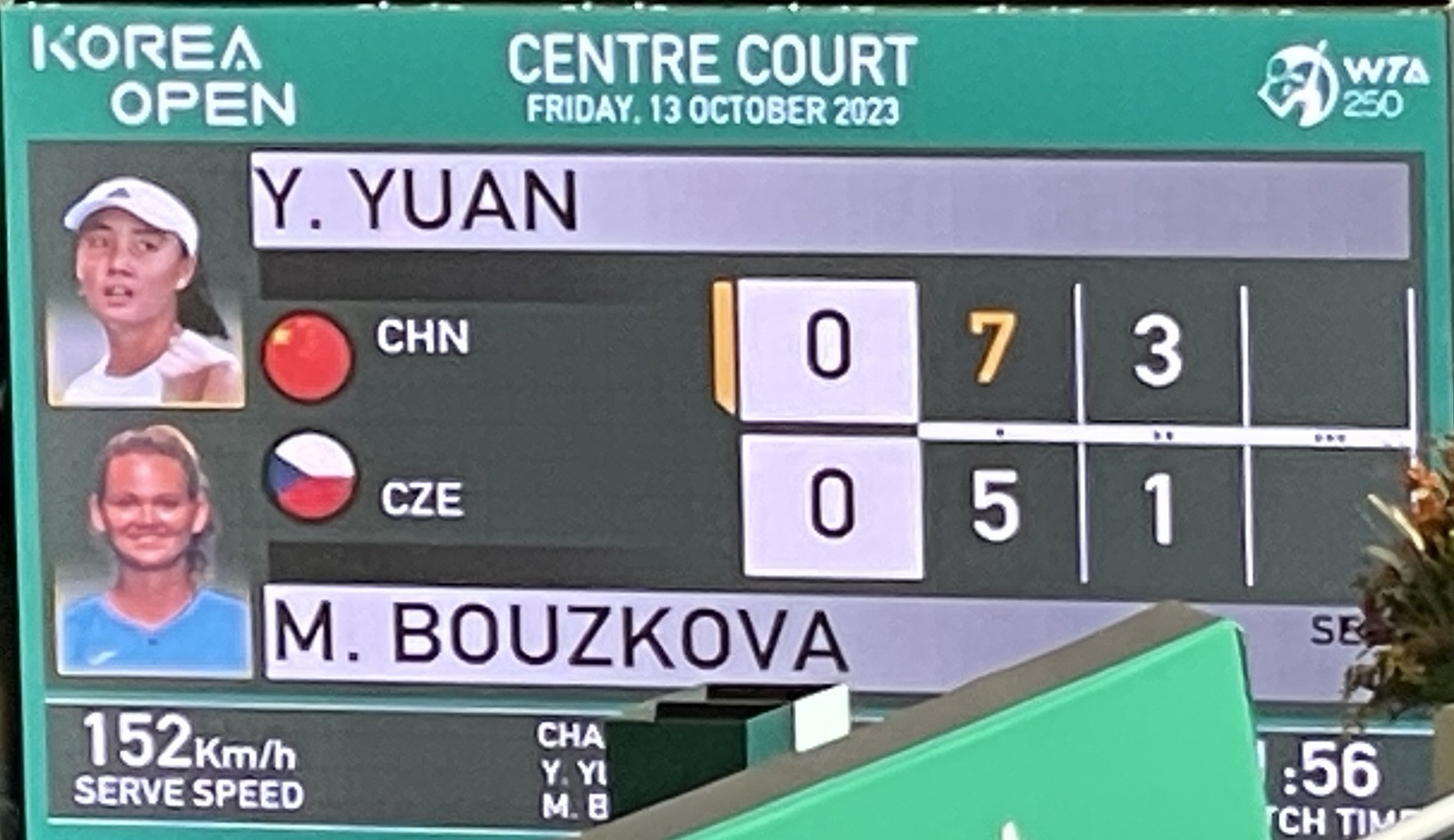 경기가 진행되고 1세트는 위엔위에 선수가 7-5로 가져가게 됩니다.